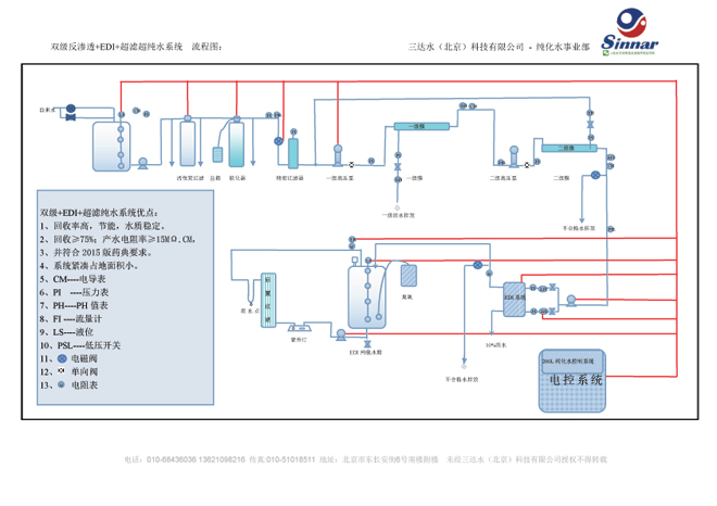 純化水雙級反滲透+EDI純化水制水儲存及用水分配方案